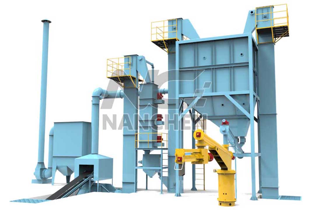 This scheme meets the design and layout of annual production capacity of 2,000 tons of castings, and selects new resin sand recycling equipment to form assembly line operation. The total stripping rate is 10-20%, the old sand recycling rate is ≥95%, and the old sand processing capacity is 5-ton/ hour. The double-arm sand mixer with 10 tons/hour of sand mixing capacity can cover about 10m2 of ground molding area. The dust removal equipment can be equipped with bag type or filter type according to customers' requirements.