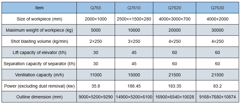 This series of equipment is used for surface cleaning and strengthening of steel structural components and castings, and is more suitable for surface rust removal and surface oxide scale cleaning of thick steel billets. It is widely used in the casting, forging, machinery, and steel industries.